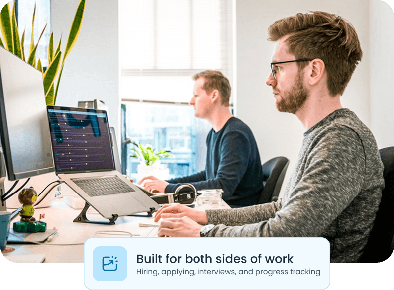 Employers get deeper control over hiring and task workflows, while professionals get clearer progress, interview access, and opportunity discovery in one account.